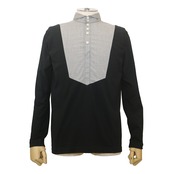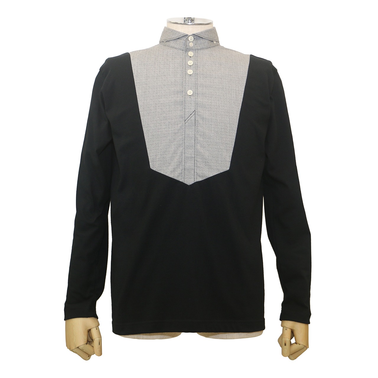 身頃部分をシャツ生地でスターチドブザム風に切り替えた長袖のカットソーです。